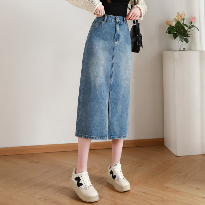 半身裙女春夏2024新款时尚小个子休闲高腰显瘦裙子中长牛仔裙
